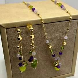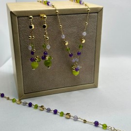 Gargantilla en plata de ley con piedras naturales. Mide 45cm de largo. Ideal para combinar con pendientes y pulsera a juego