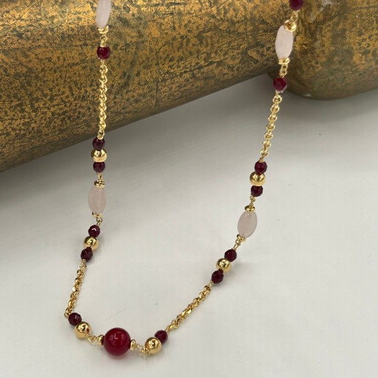 Gargantilla fabricada en plata de ley con baño de oro y piedras naturales. Mide 41cm de largo + 5cm de extensión. Cierre de reasa. Perfecto para combinar con la pulsera a juego.