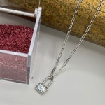 Gargantilla fabricada en plata de ley con un colgante en forma de candado. La cadena mide 43cm de largo + 5.5 de extensión. El candado mide 1.7cm. Cierre de mosquetón. Perfecta para combinar con pendientes a juego.