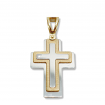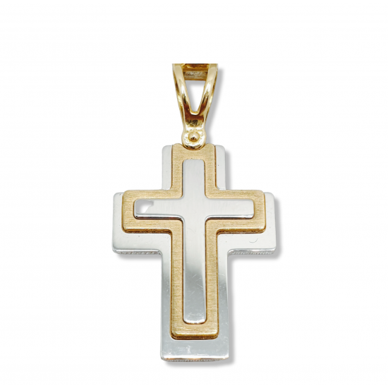 Cruz en oro blanco de 18k combinada con oro amarillo. 27mm de largo. 3gr