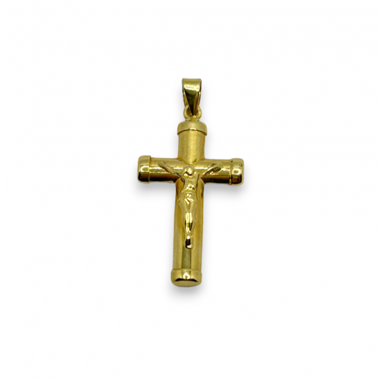 Cruz en oro de 18k con Cristo en relieve. 25mm de largo.