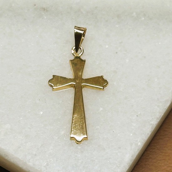 Cruz en oro de 18k, lisa satinada con picos. 2.3 cm de largo más reasa.