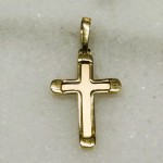 Cruz en oro de 18k con efecto mate en la parte central y pulido en los laterales. Mide 2cm de largo más la reasa.