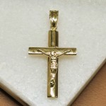 Cruz en oro de 18k con Cristo en relieve. Mide 2.8cm de largo más la reasa