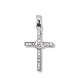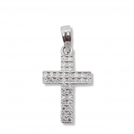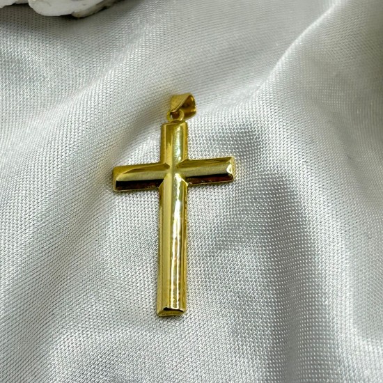 Cruz lisa semiplana en oro de 18k Mide 3cm de largo