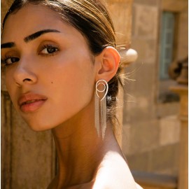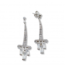 Pendientes largos en plata de ley y circonitas. 60mm de largo