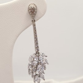 Pendientes en plata de ley con racimo de circonitas, 45mm de largo. Cierre de presión.
