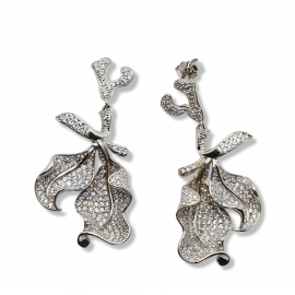 Pendientes largos en plata de ley con Circonitas. Cierre de presión. 40mm de largo