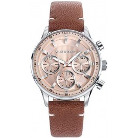 Reloj de mujer Viceroy, multifunción de acero con esfera rosa y correa de piel marrón.