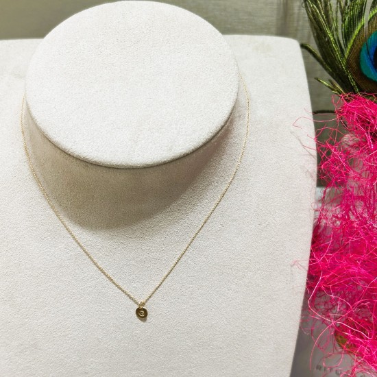 Gargantilla en oro de 18k y colgante disco de 6mm con letra G calada. Largo 43cm