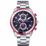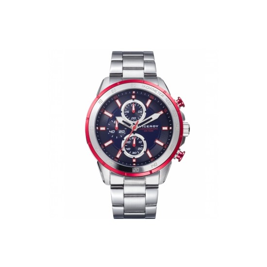 Reloj de Hombre Viceroy de la colección Heat con cronógrafo la caja y el brazalete de acero, el bisel de aluminio rojo, esfera azul con el segundero en rojo y los contadores a las 6, 9 y 12