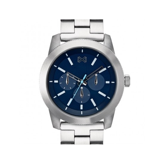 Reloj de hombre multifunción Mark Maddox de la colección Mission, con caja de acero . Un reloj urbano y actual que combina diseño y funcionalidad, la esfera azul marino y el brazalete de acero con cierre desplegable.