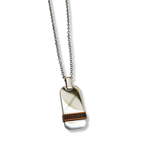 Colgante en acero con placa bicolor. 50cm de largo.