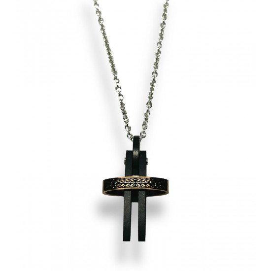 Cadena y colgante en acero con baño de rutenio. 50CM DE LARGO