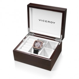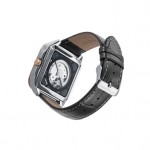 Este reloj de hombre automático destaca por su diseño sofisticado y su tecnología visible. La caja bicolor de acero e IP rosa, combinada con un cristal de zafiro, ofrece durabilidad y un toque de lujo. La correa de piel negra aporta un estilo clásico y elegante, mientras que la esfera gris transparente permite apreciar el movimiento interno del reloj, añadiendo un elemento técnico fascinante.