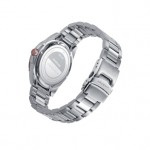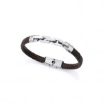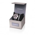 Pack reloj de hombre tres agujas con calendario a las 3 caja bicolor acero Ip rosa con tornillos decorativos en la caja 10 atm y brazalete de acero con esfera gris e índices con agujas horarias en color rosa, cristal mineral. Pulsera de acero de piel marrón