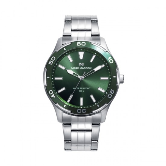 Este reloj de hombre de tres agujas destaca por su diseño moderno y sofisticado. La caja de acero con bisel verde y el brazalete de acero ofrecen una combinación de durabilidad y estilo. La esfera verde, adornada con índices y agujas horarias en color plata, crea un contraste elegante y llamativo. El cristal mineral garantiza protección y resistencia, convirtiendo este reloj en la opción ideal para el hombre que busca un accesorio versátil y refinado, perfecto para realzar todos tus looks.