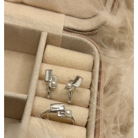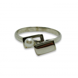 Pendientes en oro blanco de 18k con perla de río. Cierre catalán. 10mm de largo