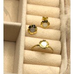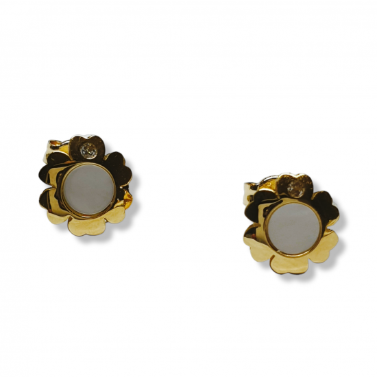Pendientes en oro de ley y nácar. Cierre de presión