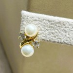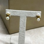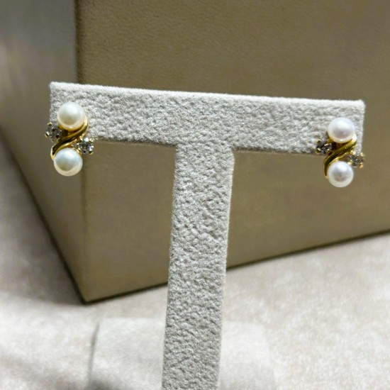 Pendientes en oro de 18k con dos perlitas y circonitas. Cierre catalán.