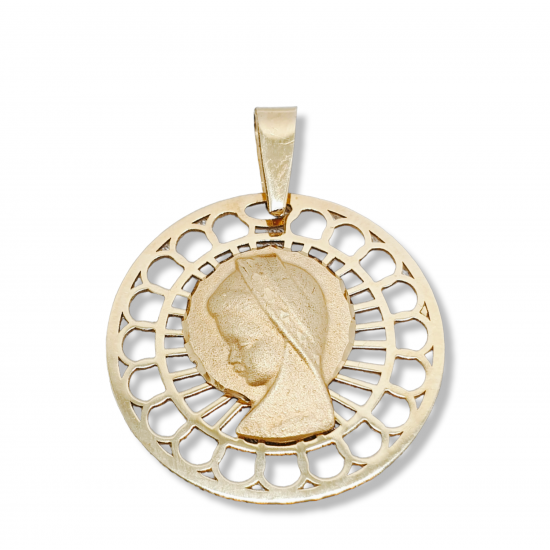 Medalla calada Virgen Niña en oro de 18k. 16mm de diámetro