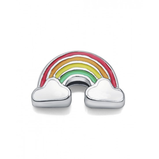 Motivo de acero y esmalte multicolor en forma de arco iris sobre nubes para montar en pulsera personalizable VICEROY de niña.
