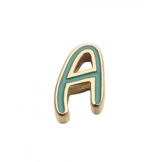 Motivos Niña Viceroy letra A de acero IP dorado y esmalte verde para montar en pulsera personalizable.
