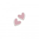 Reloj con caja de plástico, correa sándwich-band de PVC multicolor, hebilla de acero y pendientes fabricados en plata en forma de corazón con esmalte rosa y cierre de presión.