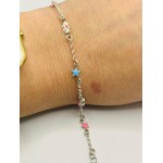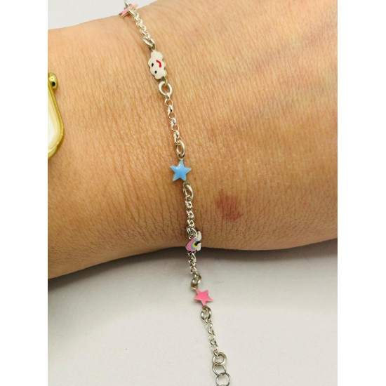Pulsera en plata de ley para niñas con esmaltados de colores. 13+2cm de largo