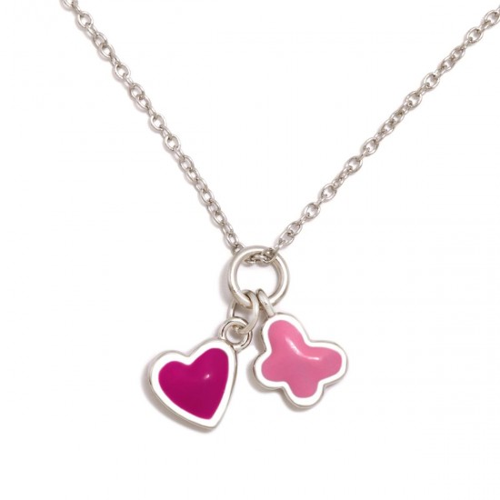Colgante de plata de ley con baño de rodio y esmalte. Tiene cadena de extensión