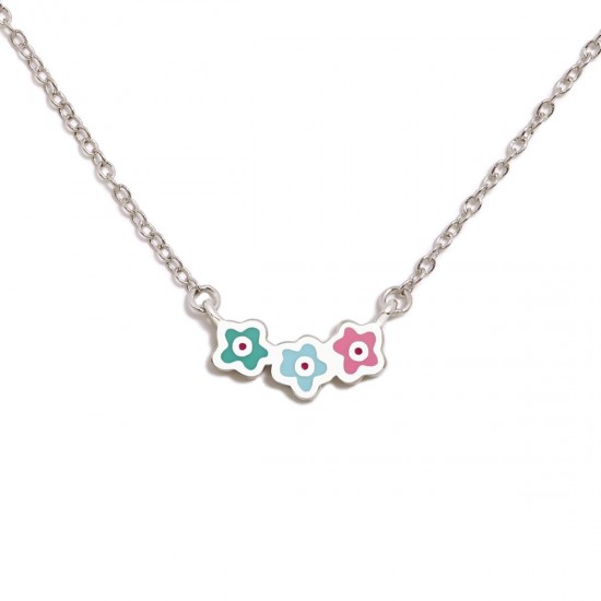 Colgante de plata de ley con baño de rodio y esmalte. Tiene cadena de extensión