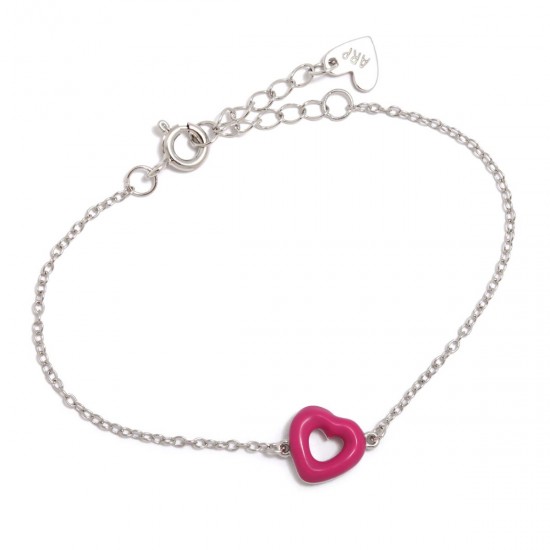 Pulsera de plata de ley y baño de rodio, con esmalte y cierre de mosquetón. Tiene cadena de extensión