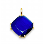 Colgante en oro de 18k y piedra natural en tono azul montada en garras. 15mm de largo.