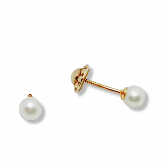 Pendientes en oro de ley con perlita cultivada de 3.5mm. Cierre de rosca.