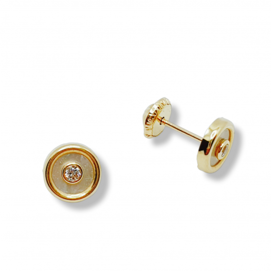 pendientes en oro de 18 k con madreperla y circonita central. 5mmde diámetro.