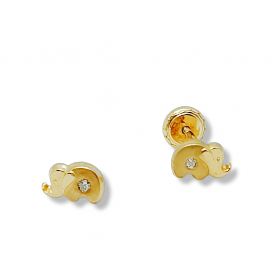 Pendientes en oro de ley. Diseño de elefante y circonita central y parte matizada. 6mm de ancho. Cierre de rosca.