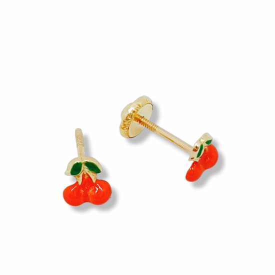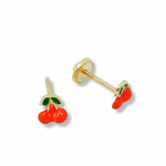 Pendientes en oro de ley, diseño de cerezas esmaltadas de 5mm y cierre de rosca.