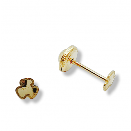 Pendientes en oro de ley, diseño de trébol en brillo con cerco matizado. 3mm. Cierre de rosca