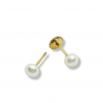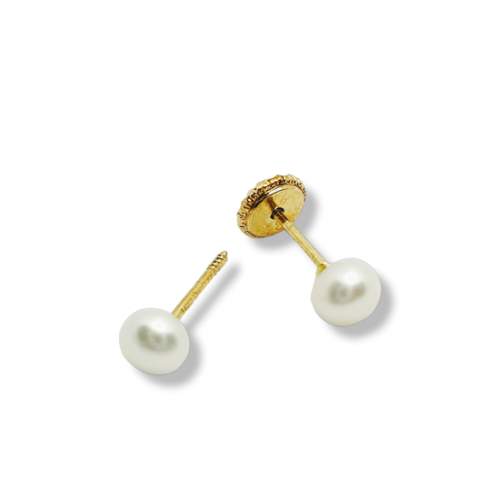 Pendientes en oro de ley y perlita natural plana de 4mm. Cierre de rosca.