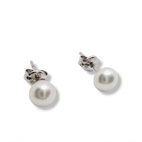 Pendientes en oro blanco de 18k. 5mm de diámetro. Cierre de presión.