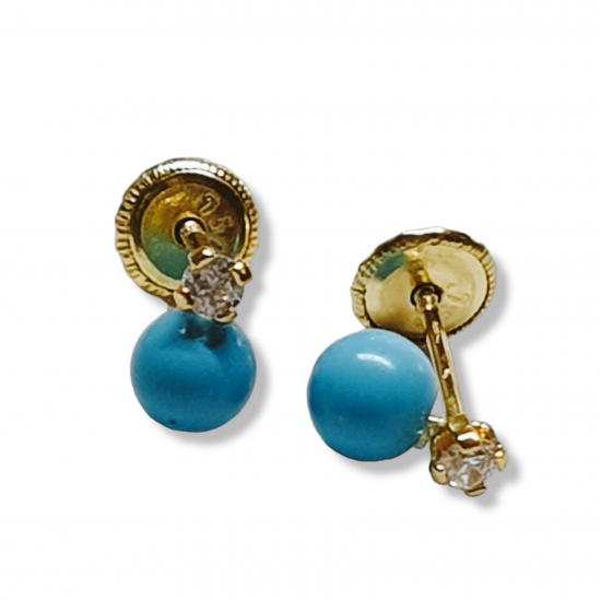 Pendientes en oro de 18k con turquesa de 4mm. Cierre de rosca.