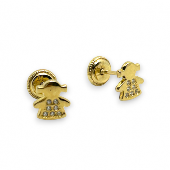 Pendientes en oro de 18k y circonitas incrustadas. 7mm de largo. Cierre de rosca