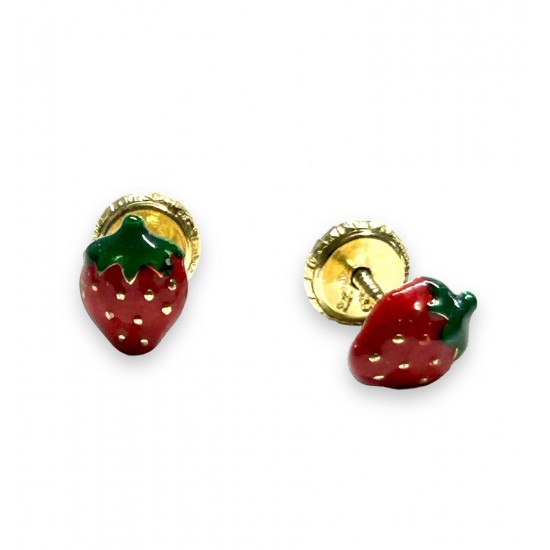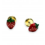 Pendientes para niña o bebé de fresa en oro esmaltado