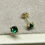Pendientes en oro de 18k con piedra natural color esmeralda engarzada en cuatro garras. Lleva cierre de rosca. Se envía con Spinny Revolution para facilitar su colocación.