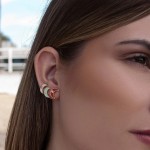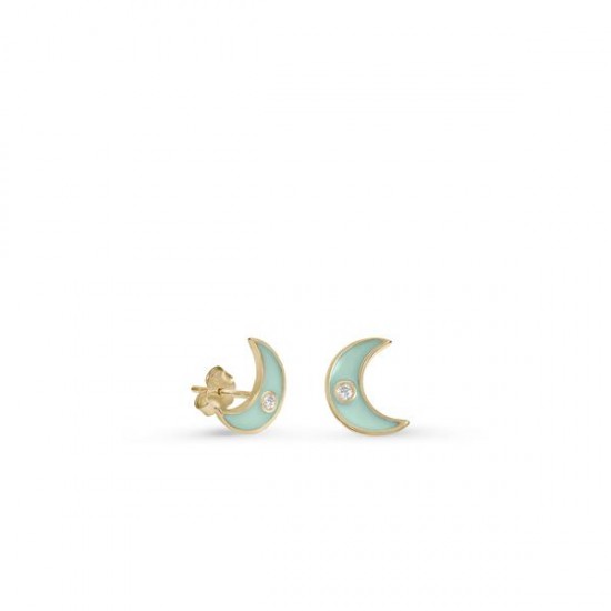 Pendientes de plata con baño de oro esmaltados en color verde agua y detalle de circonita redonda central