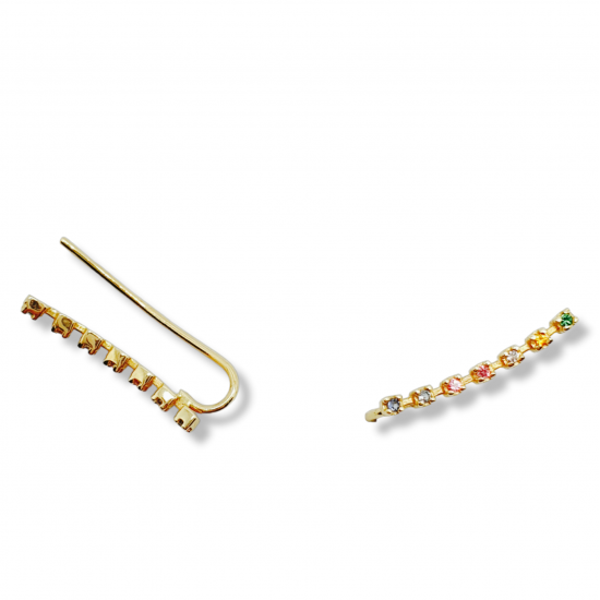 Pendientes en oro de ley, trepadores. Con circonitas de colores. 17mm de ancho.
