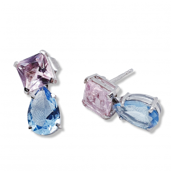 Pendientes en plata de ley y piedras naturales. 19mm de largo. Cierre de presión.