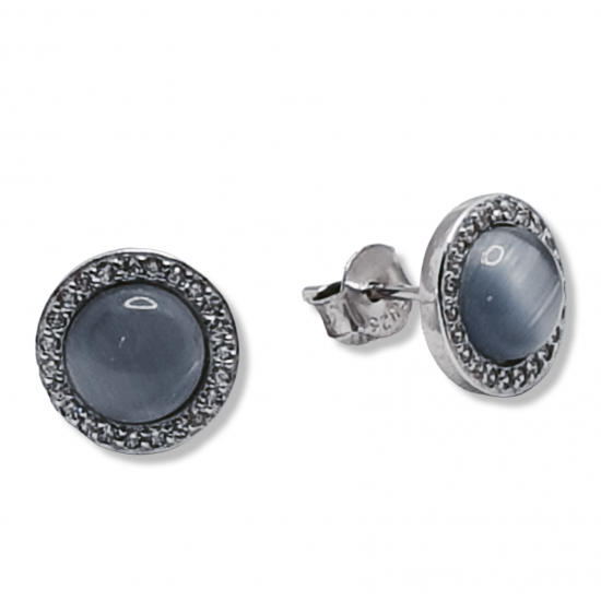 Pendientes en plata de ley con piedra gris y circonitas. Cierre de presión.