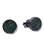 Pendientes en plata de ley, bañados en rutenio y circonitas verdes. Cierre de presión.