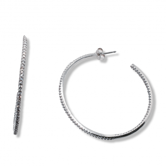 Aros en plata de ley con circonitas. Cierre presión. 45mm de diámetro.